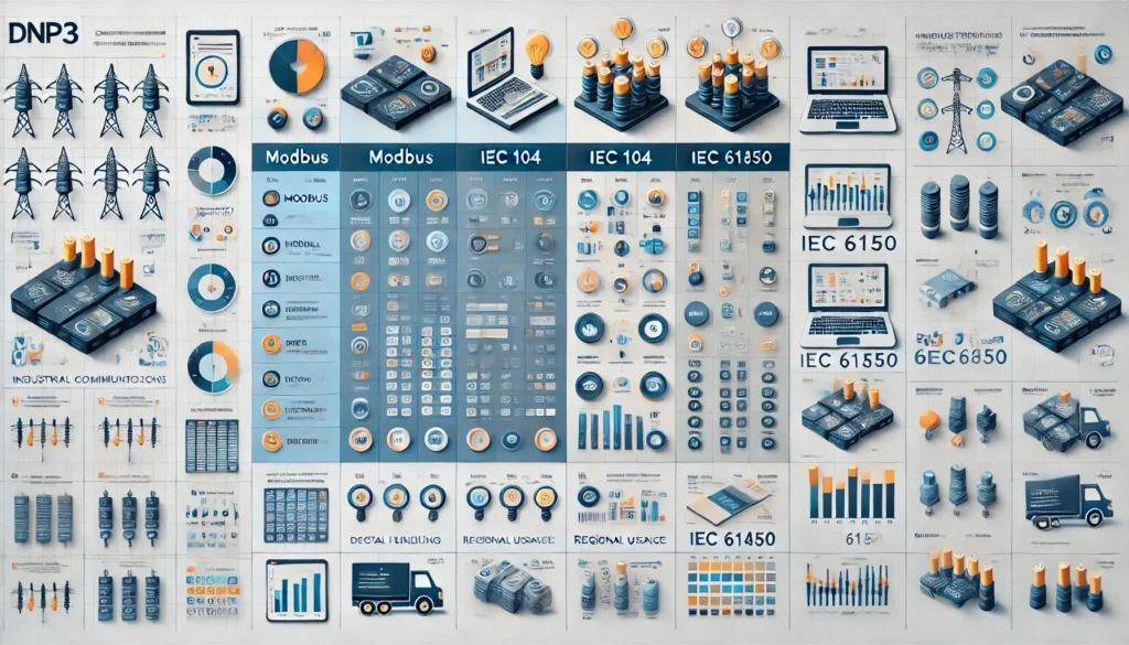 DNP3 is often compared with Modbus, IEC 104, and IEC 61850. Here’s a simple breakdown: